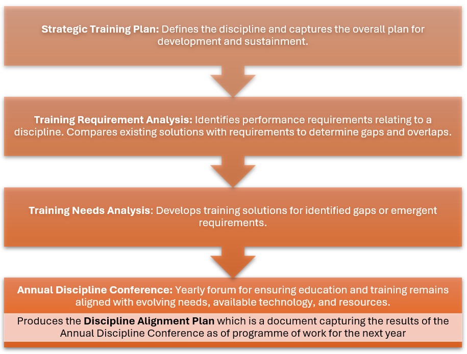 The Global Programming (GP) framework addresses the diverse training needs of NATO personnel, providing tailored solutions for all posting requirements. This structured management system ensures alignment with quality and effectiveness standards. Additionally, Education and Individual Training (E&IT) is governed by the GP framework, which includes a comprehensive governance structure, development methodology, and production planning process for NATO’s Education, Training, Exercises, and Evaluation (ETEE).