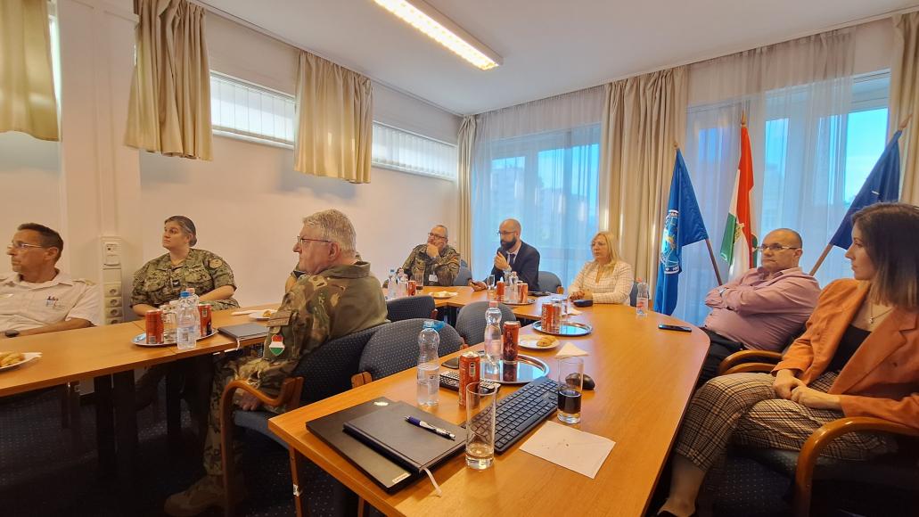 The Hungarian Defence Forces were represented by Dr. Levente Várhelyi PhD – Chief Surgeon of the Hungarian Defence Forces and Head of the Traumatology Department of the North Pest Central Hospital/Military Hospital. The heads of each branch of the NATO MILMED COE were present in person, while other members joined the event via videoconference, ensuring full participation of the staff. Brigadier General Dr. Diehm opened the session with an overview of the mission, strategic objectives, structure and main achievements of the centre. This contextual introduction framed the discussion that followed.